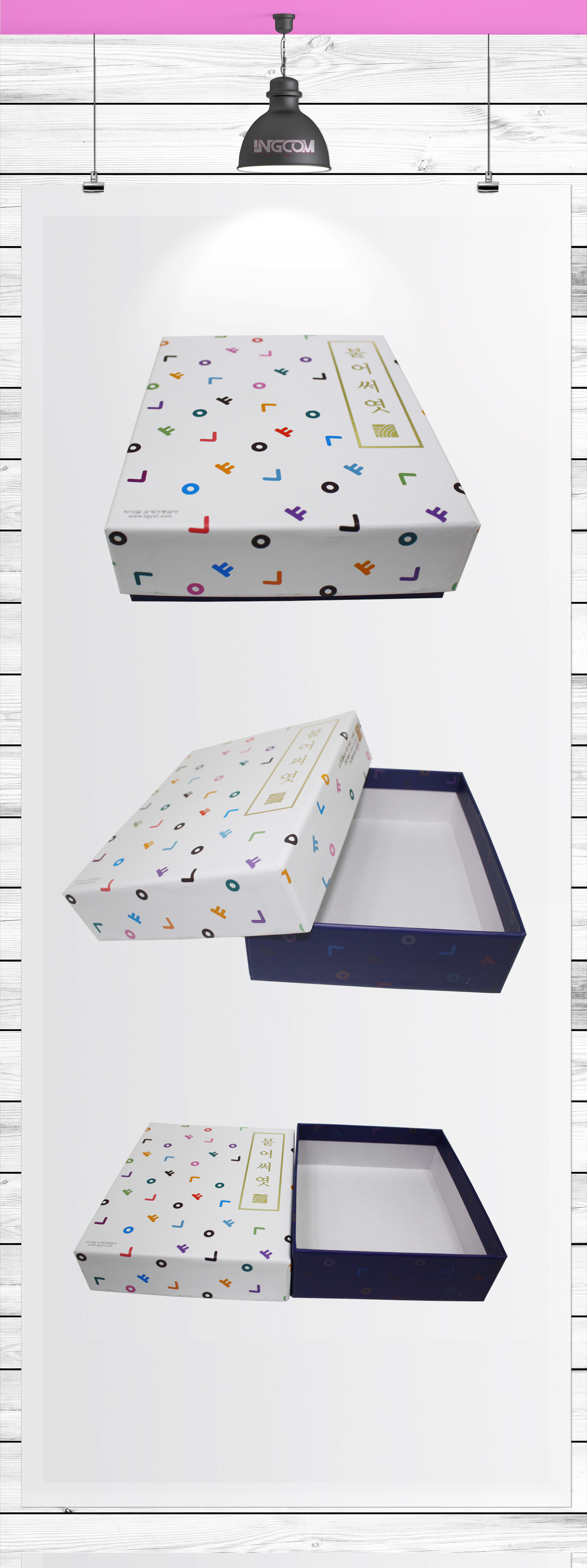 사양 : 아트지 150g, 4도단면 인쇄, 무광라미네이팅,유광금박,1200gD/T, 톰슨, 싸바리 가공