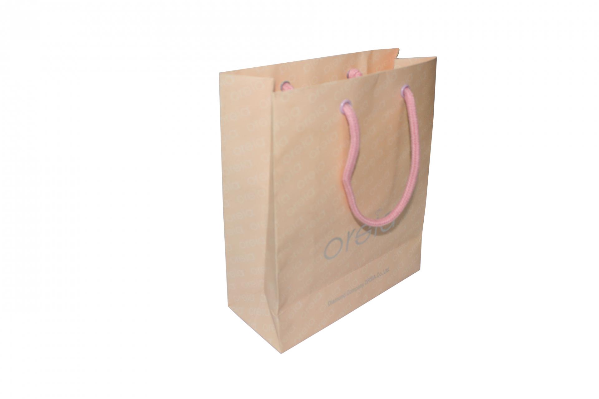 사양 : 180s/w, 별색1도인쇄, 무광라미네이팅, 홀로그램박, 쇼핑백가공, 6mm면스판끈