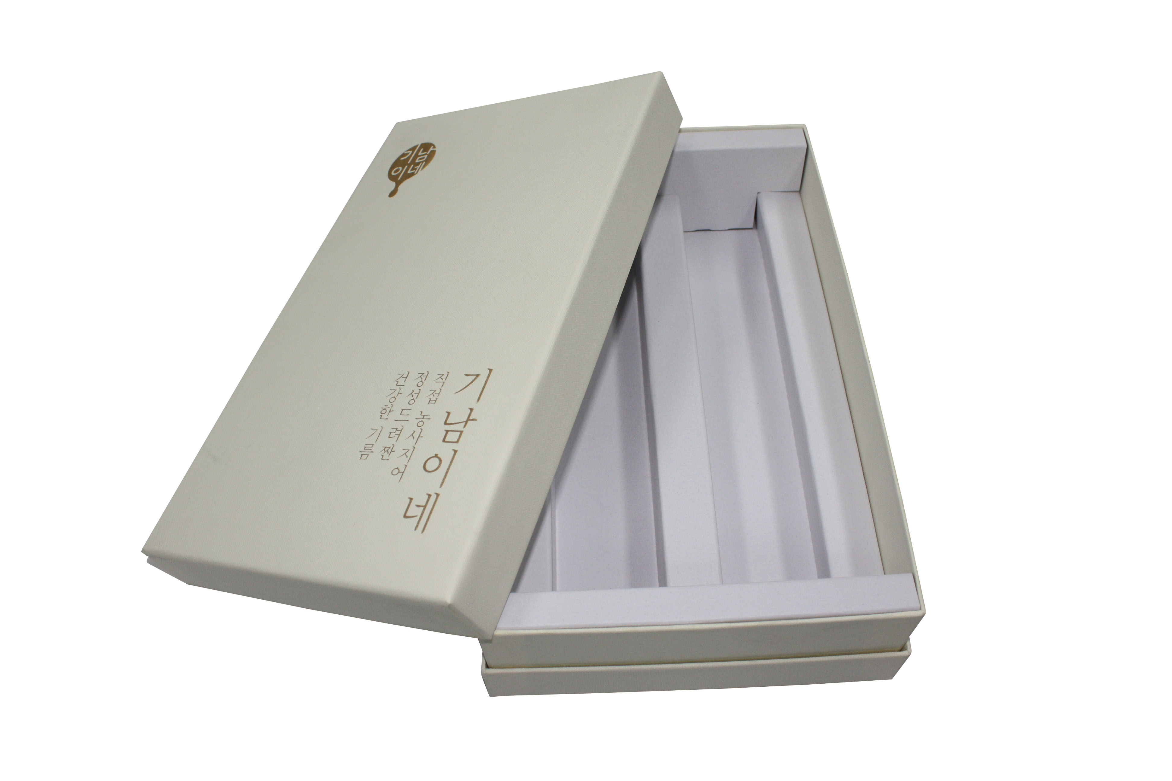 사양 : 박스 - 120g레자크#205아이보리, 무광금박, 1200D/T, 싸바리 / 속패드 - 240sc, 무광라미네이팅, 백E골합지, 톰슨