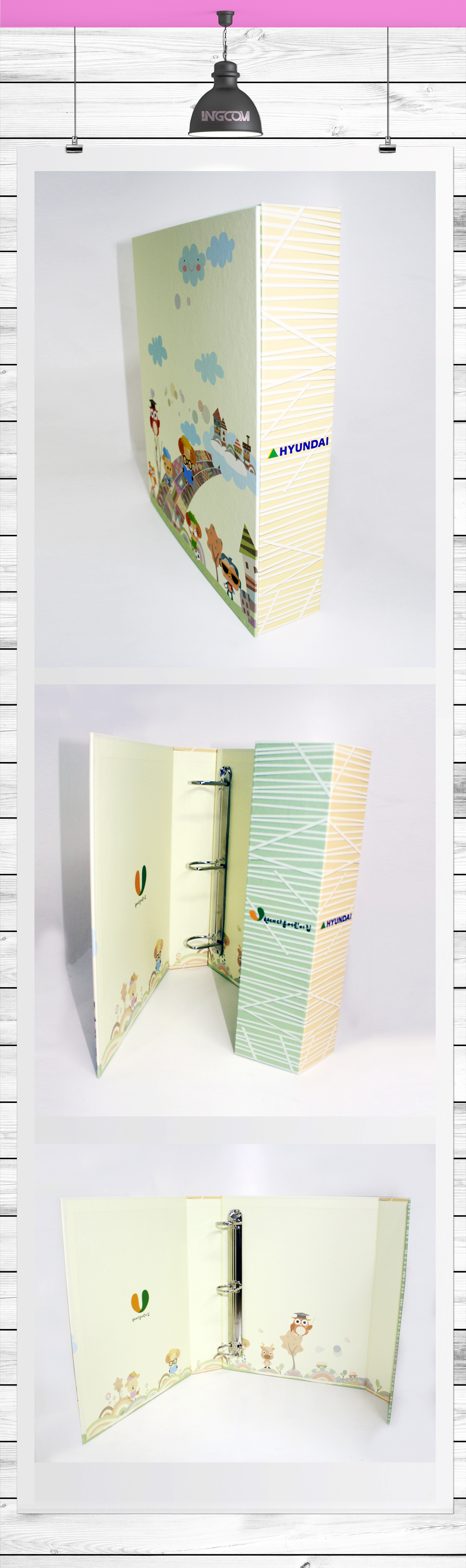 사양 : 아트지150g, 단면4도 인쇄, 무광라미네이팅, 1800g D/G 합지(자석*철판 가공), 3공D링 장식 하도메