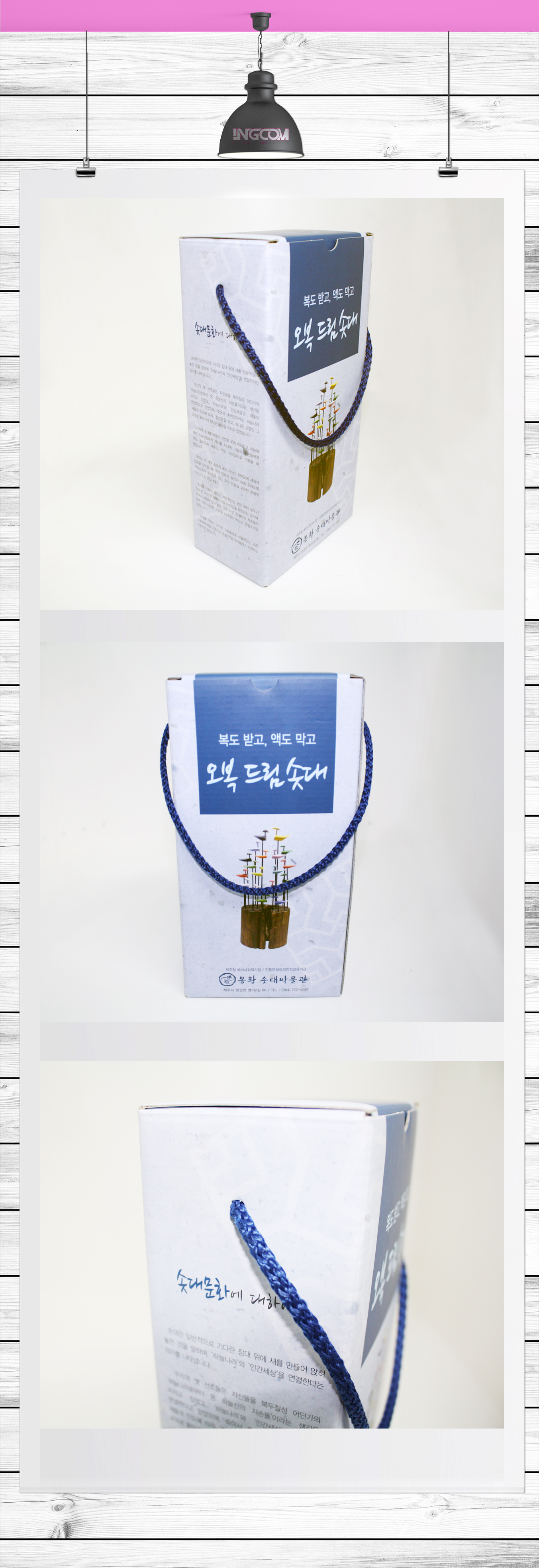 사양 : sc마닐라240g, 단면4도 인쇄, 무광라미네이팅, E골 합지, 톰슨, 삼면접착, 끈작업