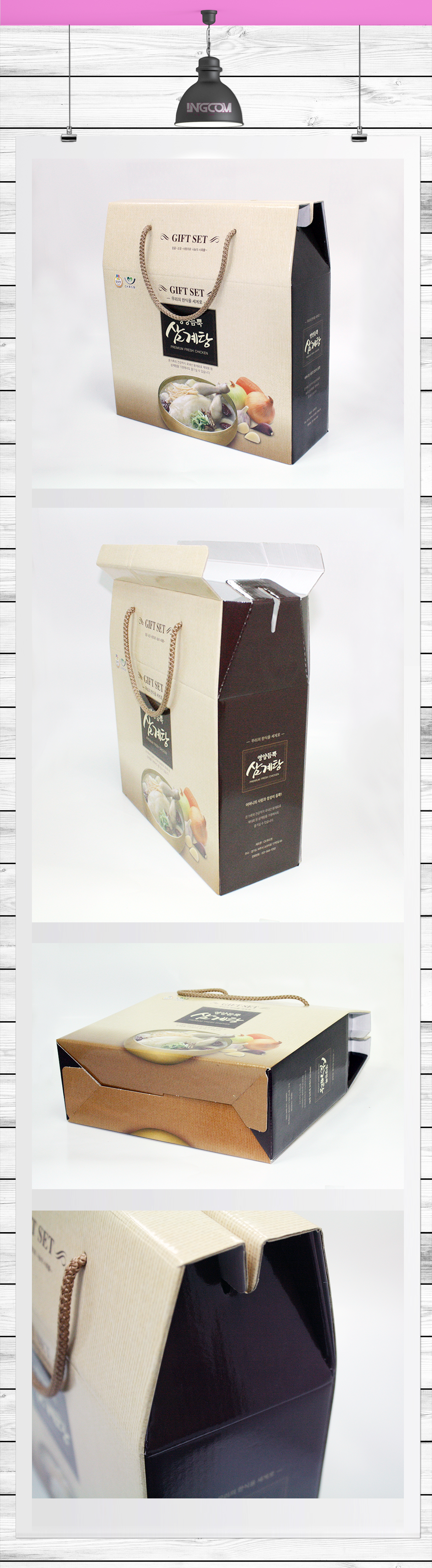 사양 : sc 240g, 4도단면 인쇄, 유광라미네이팅, 백E골 합지, 톰슨, 접착, 수작업(끈달기)